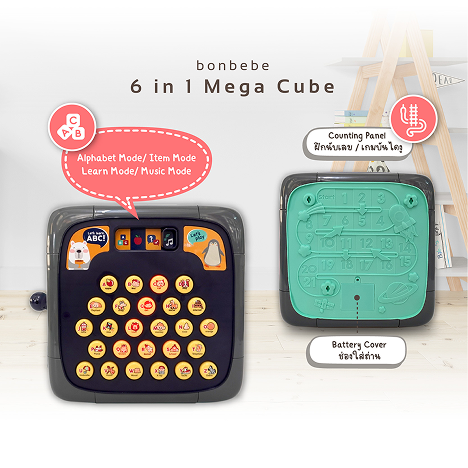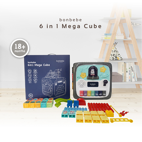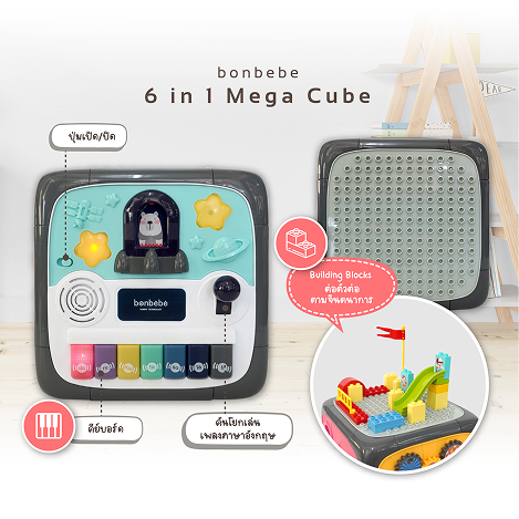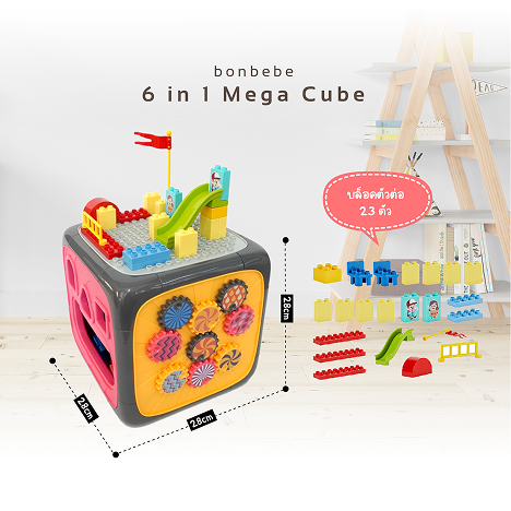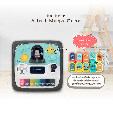 bonbebe Mega Cube กล่องกิจกรรมเสริมภาษาและความคิดสร้างสรรค์ 6 ด้าน มาพร้อมบล็อคตัวต่อ 23 ตัว และ Smart blocks 10 ชิ้น (คำศัพท์ 20 คำ)